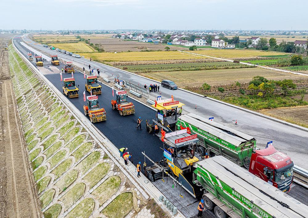 11月7日,在东兴高速东台段,施工人员正抢抓秋季施工时机,全面推进沥青下面层摊铺施工。目前,主线水稳底基层已全部完成,下基层完成八成,上基层完成过半。