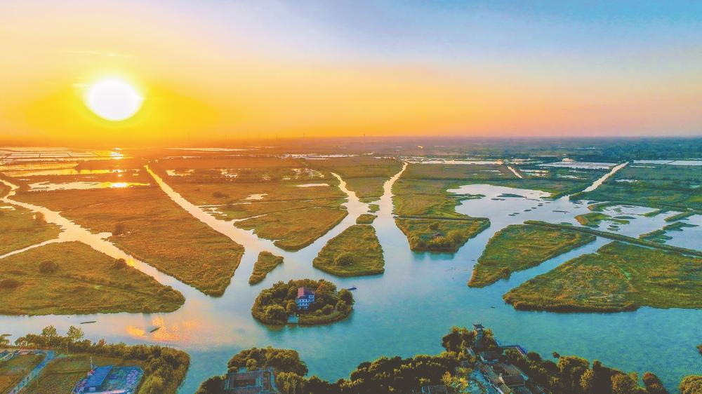 近日,建湖县九龙口风景区迎来一年中最迷人的时节。芦苇荡在秋风中泛起金色波浪,树木换上黄绿交织的秋装,湖水澄澈如镜,倒映着湛蓝天空与斑斓彩叶。游客泛舟湖上,但见水道蜿蜒,别有一番韵味。