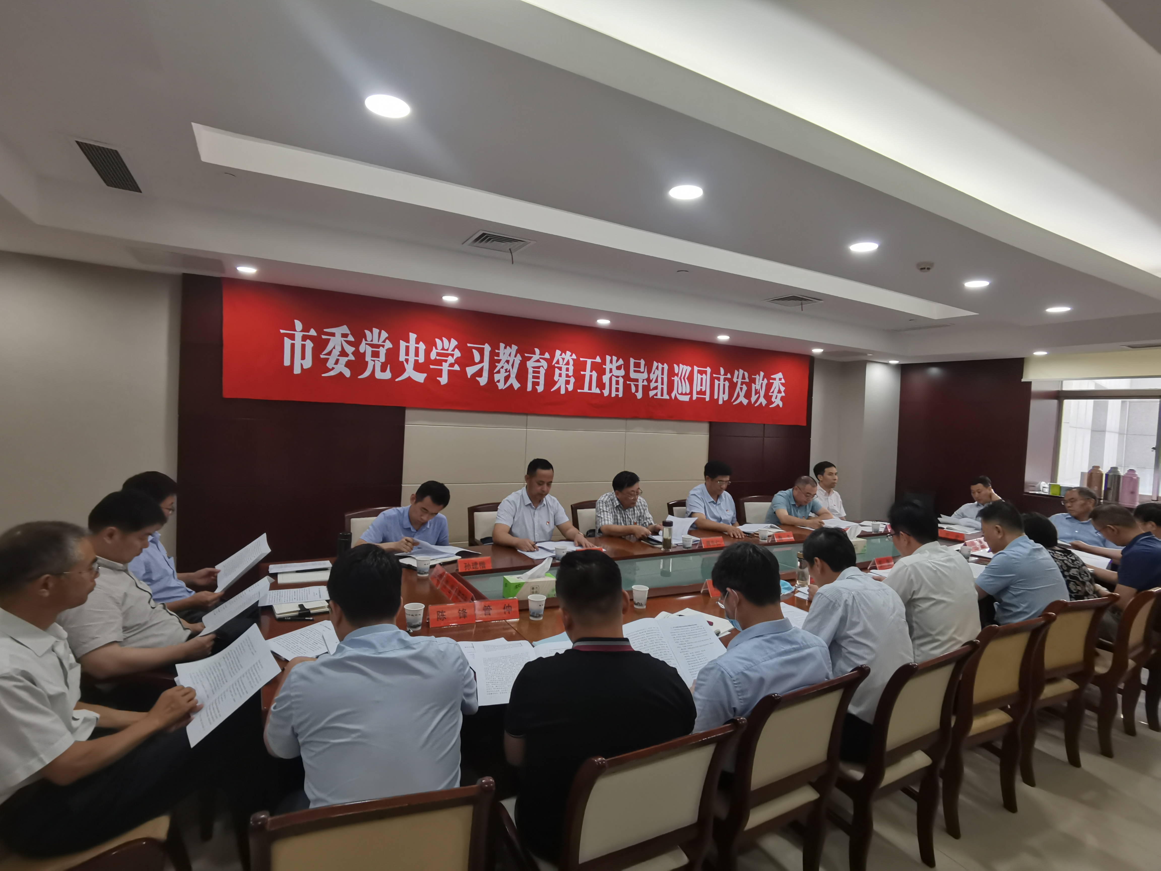 8月18日,市委党史学习教育第五巡回指导组到市发改委,开展第三轮党史学习教育指导工作。市发改委党组书记、主任顾明东作了专题汇报。市委党史学习教育第五巡回指导组组长蒋东仁、副组长张守中,成员王粉所、张建楷、吴国飞莅临指导。