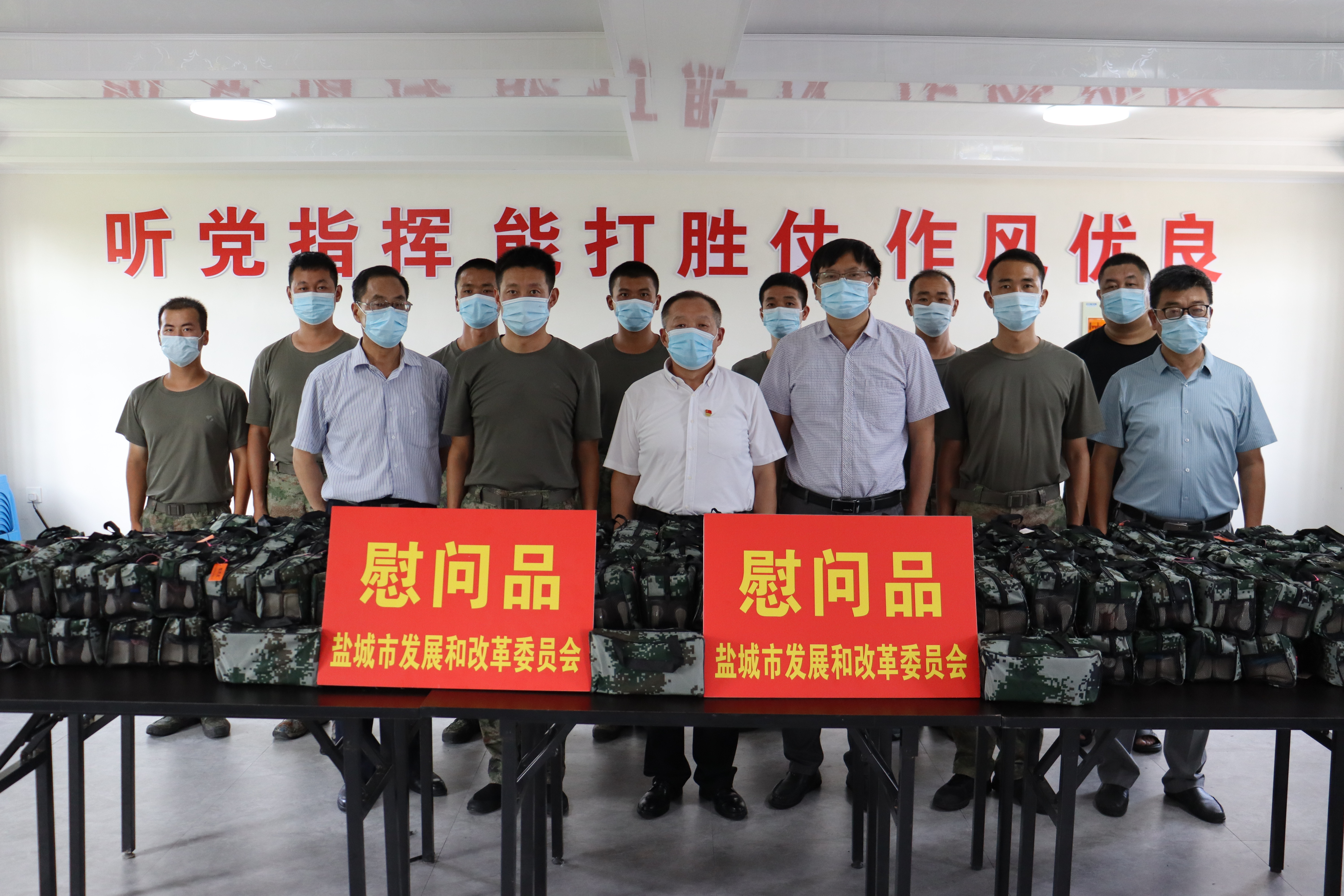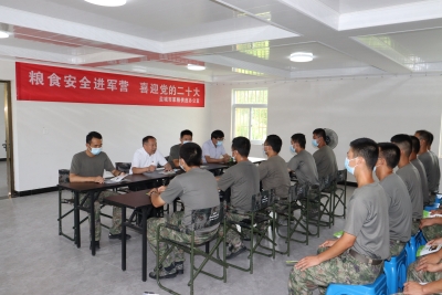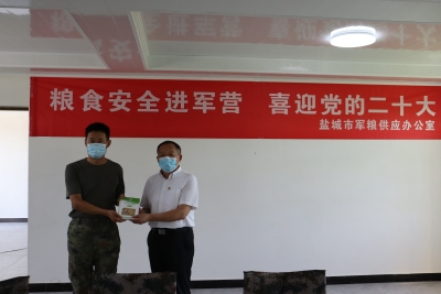在中国人民解放军建军95周年即将到来之际,7月19日下午,盐城市发改委军粮供应办公室主任魏涛率队带着全市军粮人的深情厚谊,来到中国人民解放军94987部队慰问同时开展“粮食安全进军营,喜迎党的二十大”活动,向部队官兵致以节日祝贺,并送上慰问品。慰问组参观了部队官兵的日常训练、战备设施、内务管理、给养战备仓库,魏涛主任为部队官兵集中宣讲粮食安全营养健康、粮食节约减损科普知识,宣传军粮供应政策,并现场查看军粮库存、生产日期、二维码溯源信息,指导部队做好高温季节军粮推陈储新科学储粮工作,征求了部队官兵对做好军粮供应工作的意见和建议。