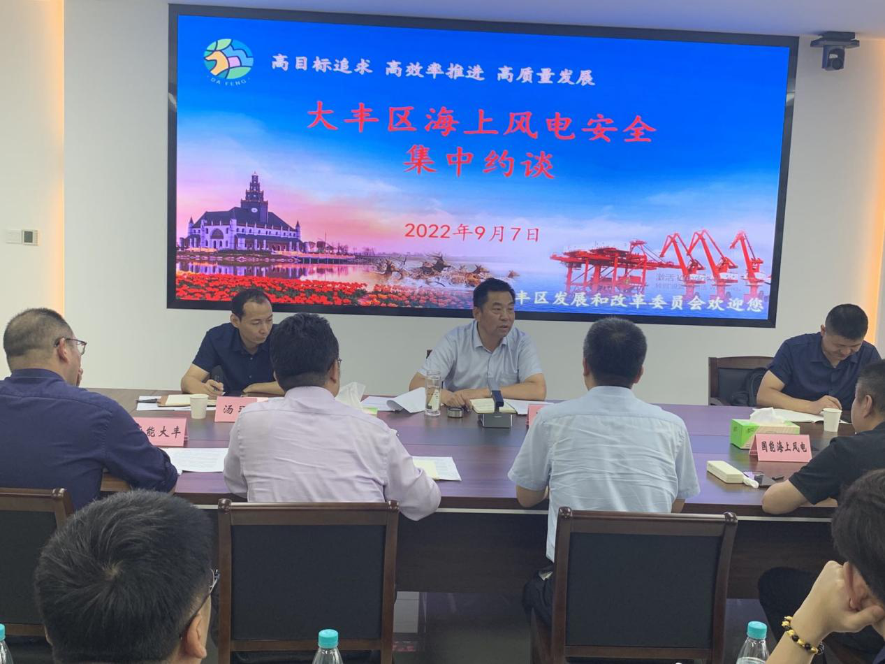 近期,盐城市安全稳定综合督查组、大丰区安全稳定综合督查组开展海上风电安全生产专项督查,检查中发现许多隐患问题,充分暴露了海上风电企业在落实主体责任、船舶人员日常监管、内部安全管理制度落实、安全隐患排查整治等方面还存在很多监管盲点,为切实提高海上风电本质安全水平。9月7日,大丰区发改委对全区5家海上风电企业进行集中约谈。约谈中,通报了督查情况,各单位分别作了表态发言。最后,潘伟主任提出要提高政治站位,增强责任意识,守牢安全底线;要履职尽责,狠抓问题整改,做到严格风险管控;要强化多措并举,确保“两节”安全。