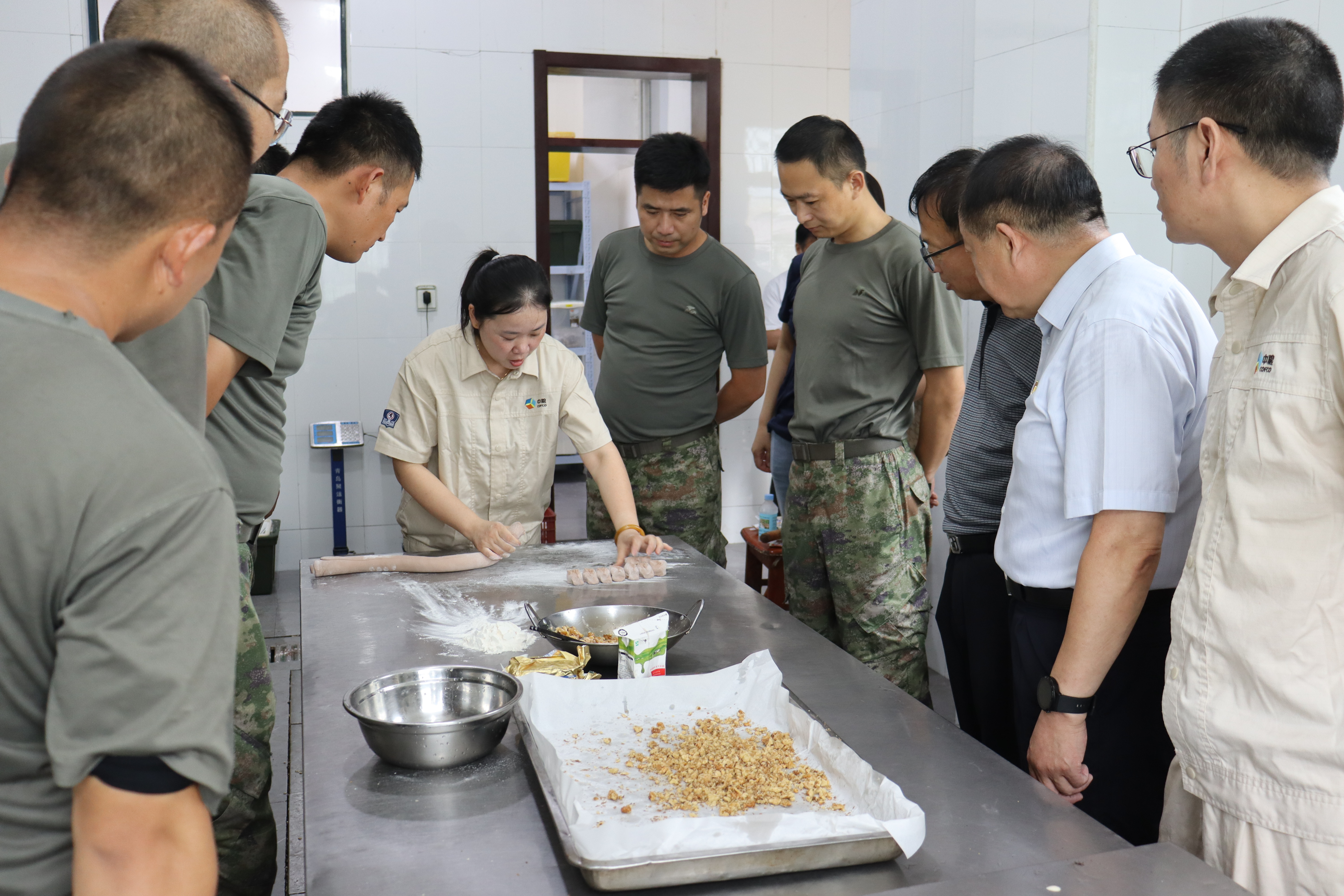 为了进一步延伸为部队服务的领域,切实为部队办实事,促进部队、军粮供应部门、军粮加工配送企业之间的互动,7月20日盐城市发改委军粮供应办公室携手全国军粮定点加工配送企业中粮东海粮油工业(张家港)有限公司、滨海县军粮供应站有限公司到驻滨海某部开展花色面点现场指导制作进军营暨八一慰问活动,此项活动标志着盐城市2023年粮油科技进军营拉开帷幕。滨海县发改委副主任郭爱军、滨海县粮食产业发展有限公司董事长王亚年全程参加活动。