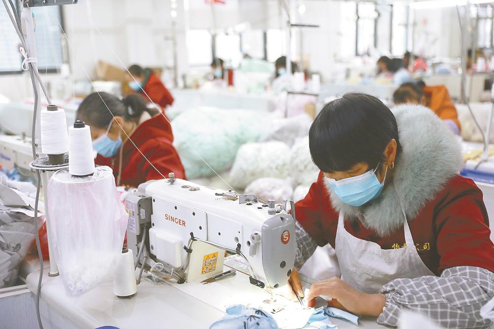 2月26日,位于大丰区白驹镇的盐城怡童家纺有限公司,工人正在赶制发往欧盟的毛绒玩具和床上用品。春节后,大丰区白驹镇多家企业及早组织复工复产,努力实现外贸生产“开门红”。